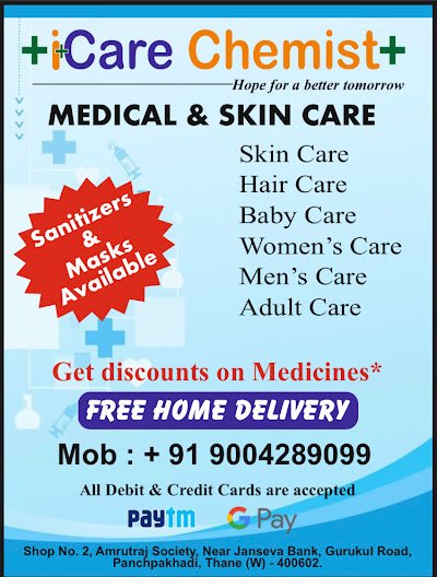 At ICare Chemist, Thane, we are committed to providing trusted pharmaceutical care and quality healthcare products to our community. Our mission is to ensure easy access to genuine medicines, healthcare essentials, and professional guidance whenever you need it. With a focus on reliability, affordability, and customer care, we strive to support the health and well-being of every family we serve. At ICare Chemist, your health truly matters, and we aim to be your dependable partner in everyday healthcare.